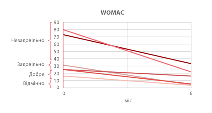 Оцінка за шкалою WOMAC показала значне покращення функціонального стану: