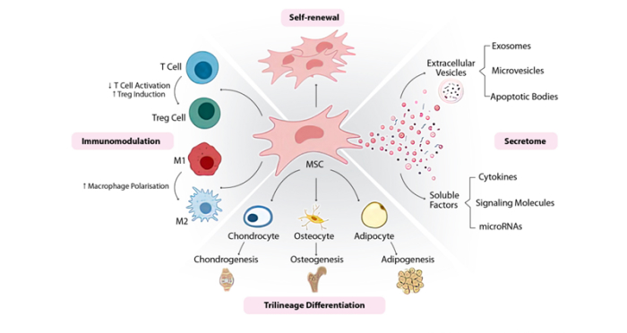 Важливо: основний терапевтичний ефект МСК реалізується не лише через диференціацію, а насамперед через паракринну дію та регуляцію запалення.