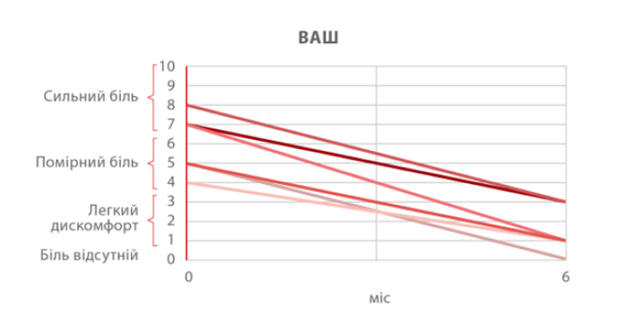 Протягом 6 місяців після терапії спостерігалося суттєве зниження інтенсивності болю: